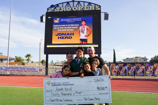The Paso del Norte Community Foundation proudly recognizes Eastwood High School senior Jonah Herd as the 2026 Coach McLain Track and Cross-Country Scholarship recipient. A dedicated athlete and leader, Jonah’s journey through running reflects perseverance, growth, and a commitment to making a positive impact in his community.